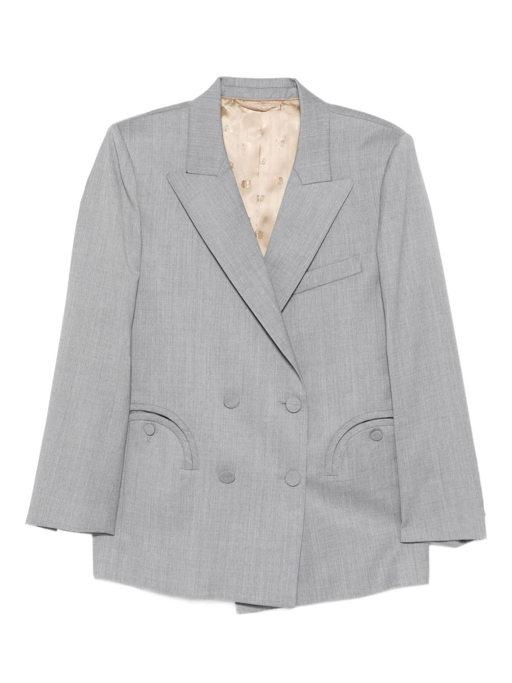 double-breasted curved-pocket blazer Highlights - Grey - Double-breasted button fastening - Curved pockets - Peak lapels - Long sleeves - Straight hem Made in Italy Composition Lining: Viscose 100% Outer: Virgin Wool 100% SIZE & FIT Model measurements Height 5 ft 9 in(1.75 m) Bust/Chest 34.64 in(88 cm) Hips 36.61 in(93 cm) Waist 26.37 in(67 cm) Washing instructions Dry Clean Only