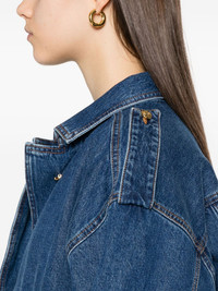 elasticated pocket denim jacket Highlights - Blue - Button fastening - Elasticated hem - Curved welt pockets Made in Italy Composition Outer: Cotton 100% Lining: Nylon 100%, Polyester 100% SIZE & FIT Model measurements Height 5 ft 10 in(1.78 m) Bust/Chest 33.85 in(86 cm) Hips 36.61 in(93 cm) Waist 26.77 in(68 cm) Washing instructions Machine Wash