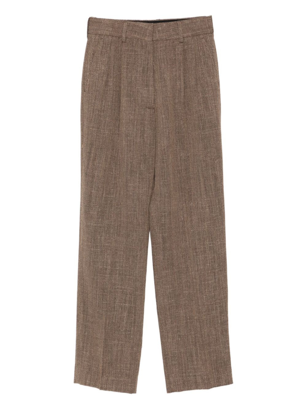 herringbone pleated trousers Highlights - Brown - Herringbone weave - Pleated front - Straight leg Made in Italy Composition Outer: Wool 47%, Alpaca 42%, Linen/Flax 11% Lining: Viscose 100% SIZE & FIT Model measurements Height 5 ft 10 in(1.78 m) Bust/Chest 31.49 in(80 cm) Hips 37 in(94 cm) Waist 23.62 in(60 cm) Washing instructions Dry Clean Only