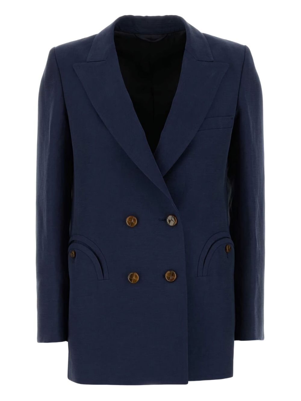 Savannah double-breasted blazer Highlights - Navy blue - Peak lapels - Double-breasted front - Curved side pockets - Button fastening - Back vent Made in Italy Composition Outer: Linen/Flax 59%, Silk 41% Lining: Viscose 100%
