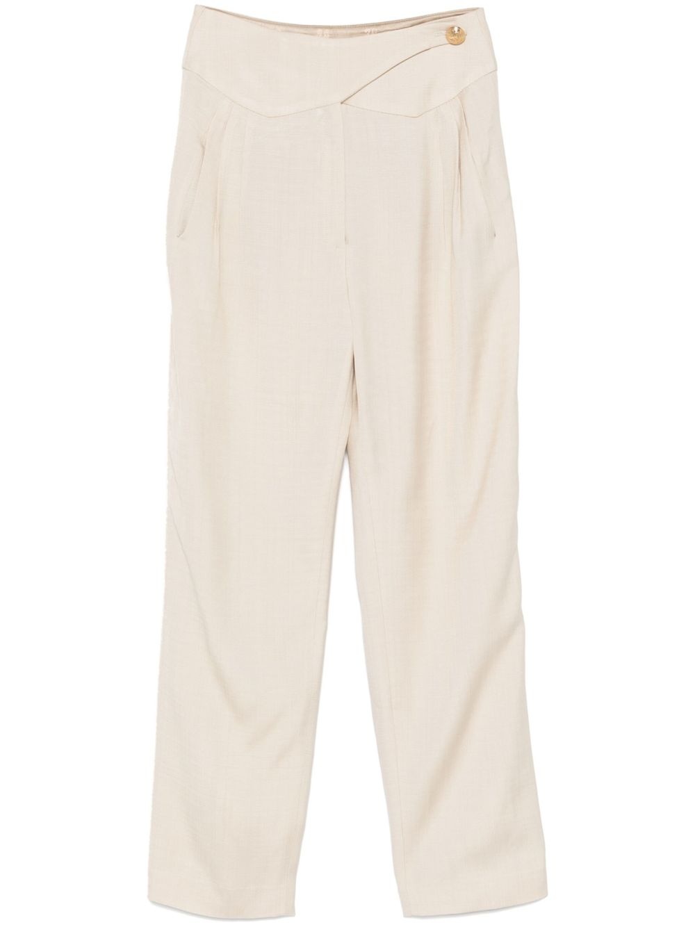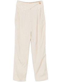 Sheena trousers Highlights - Light beige - Concealed front button, hook and zip fastening - Belt loops - Two side slit pockets - Box-pleat detail Made in Italy Composition Lining: Viscose 100% Outer: Viscose 100% SIZE & FIT Model measurements Height 5 ft 11 in(1.8 m) Bust/Chest 32.67 in(83 cm) Hips 36.22 in(92 cm) Waist 24.4 in(62 cm) FittingInformation Designed for a straight-leg fit, these trousers allow for a close fit at the waist and an unrestricted, comfortable fit over the leg Cropped in length Made from a midweight non-stretch fabric