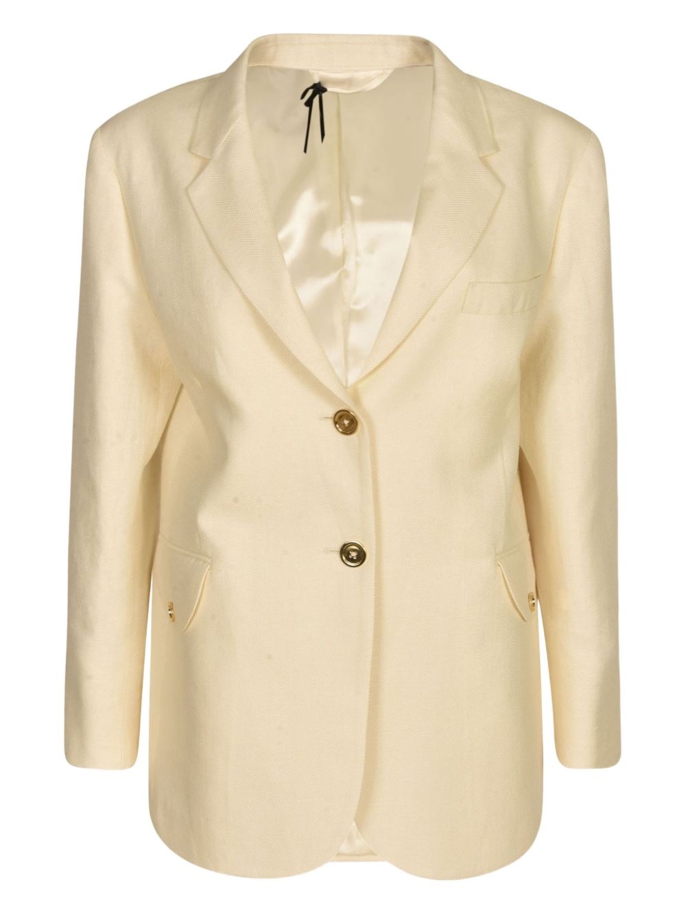 single-breasted blazer Highlights - Cream - Single-breasted closure - Gold-tone buttons - Side flap pockets - Notched lapels - Long sleeves Imported Composition Fabric 100% Washing instructions Read Manufacturer Guidelines