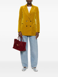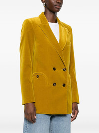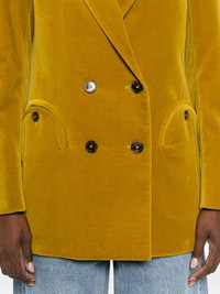 velvet blazer Highlights - Mustard yellow - Double-breasted - Peak lapels Imported Composition Wool 100%, Mohair 100% SIZE & FIT Model measurements Height 5 ft 10 in(1.77 m) Bust/Chest 32.28 in(82 cm) Hips 35.03 in(89 cm) Waist 25.19 in(64 cm) Washing instructions Read Manufacturer Guidelines