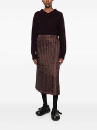 Nº08 Monpe midi skirt Highlights - Brown - Padded design - Concealed press-stud fastening - Rear elasticated waistband Imported Composition Nylon 100%, Polyester 100% SIZE & FIT Model measurements Height 5 ft 8 in(1.73 m) Bust/Chest 29.92 in(76 cm) Hips 33.07 in(84 cm) Waist 23.22 in(59 cm) Washing instructions Read Manufacturer Guidelines