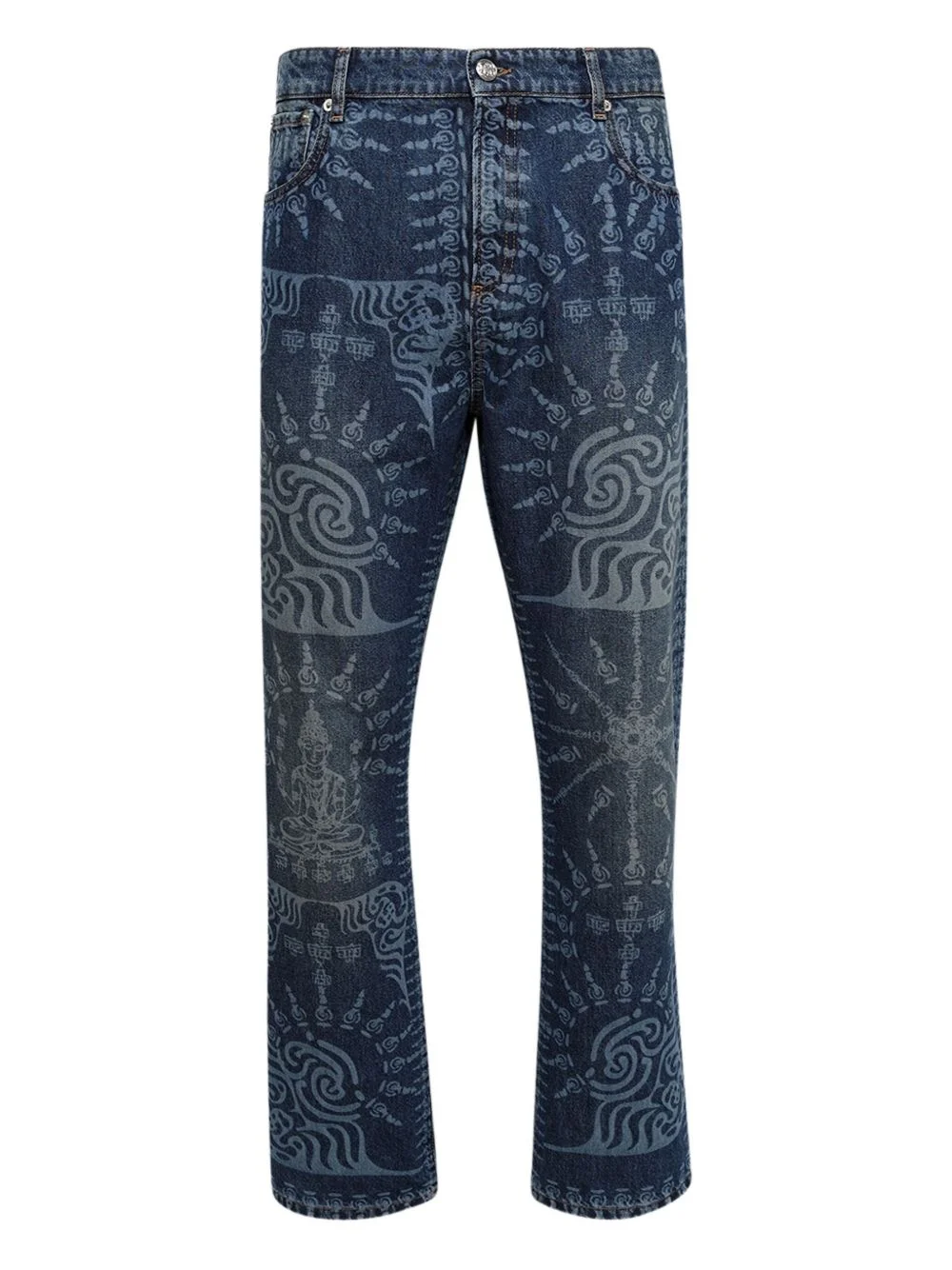 all-over-print jeans Highlights - Blue - All-over print - Button fastening - Belt loops - Five pockets - Topstitching Imported Composition Lining: Cotton 100% Washing instructions Read Manufacturer Guidelines