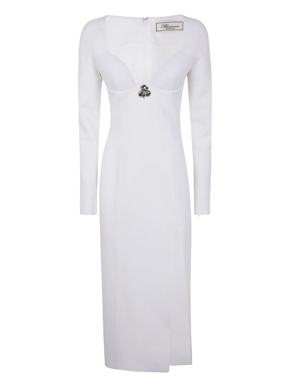 applique dress Highlights - White pearl - Applique - Long sleeves - Square neck - Concealed zip fastening Imported Composition Polyester 100% Washing instructions Read Manufacturer Guidelines
