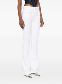 bootcut jeans Highlights - White - Front button and zip fastening - Classic five pockets - Belt loops - Logo patch to the rear Imported Composition Cotton 98%, Elastane 2% SIZE & FIT Model measurements Height 5 ft 11 in(1.8 m) Bust/Chest 31.49 in(80 cm) Hips 36.61 in(93 cm) Waist 24.4 in(62 cm) FittingInformation Designed with a bootcut leg, these jeans allow for a close fit at the waist and with an unrestricted, comfortable fit and additional room at the calves Constructed from stretch denim, this piece offers a stretch fit with durability