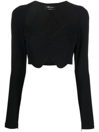 butterfly-motif cropped top black stretch-design butterfly motif cropped sweetheart neck long sleeves concealed side zip fastening Made in Italy Composition Outer: Viscose 70%, Acetate 26%, Elastane 4% Lining: Polyester 100% SIZE & FIT Model measurements Height 5 ft 9 in(1.74 m) Bust/Chest 32.28 in(82 cm) Hips 35.82 in(91 cm) Waist 24.01 in(61 cm) FittingInformation This piece fits true to size. We recommend you get your regular size Cut for a slim fit Made with a mid-weight fabric Washing instructions Dry Clean Only