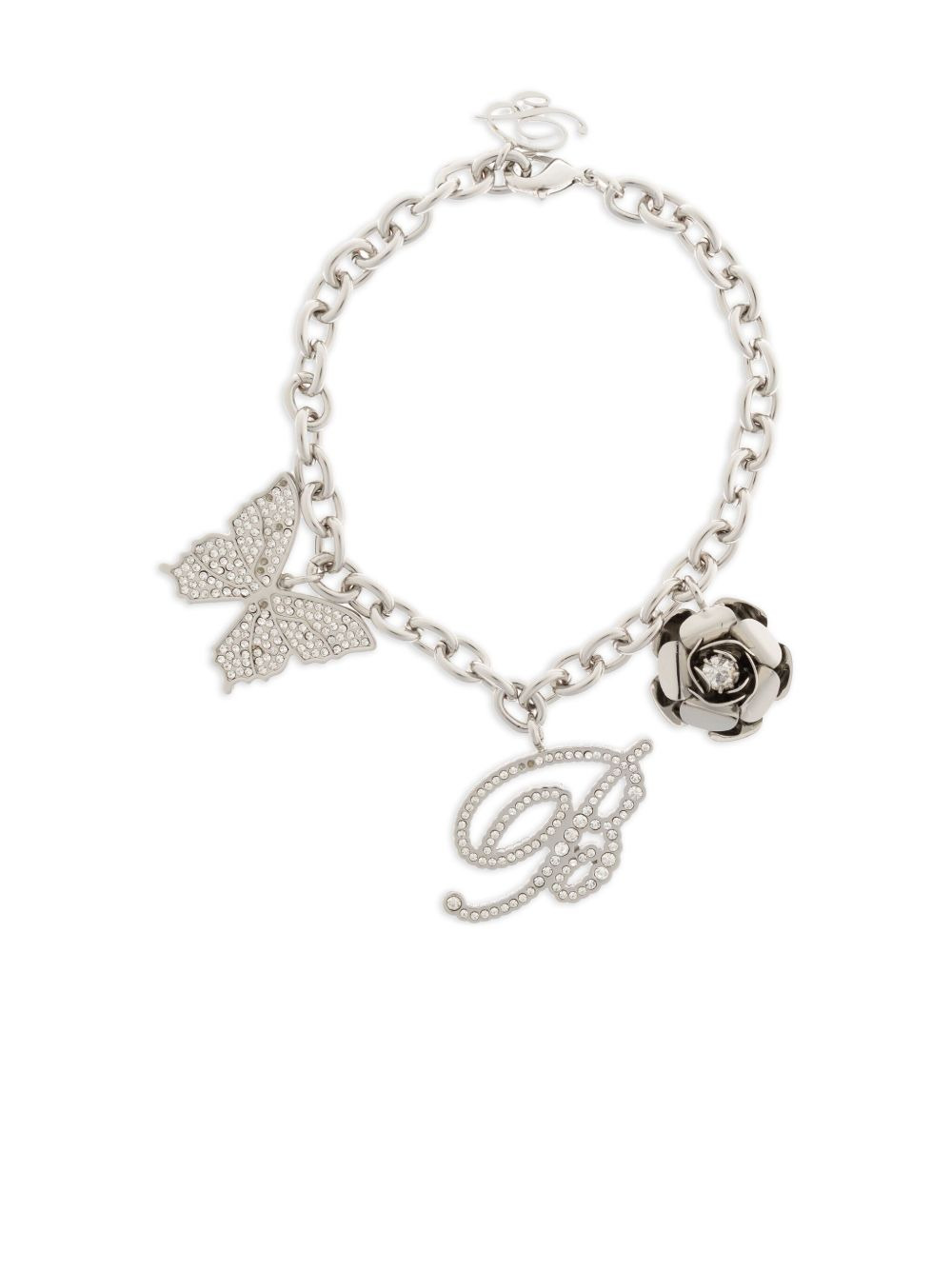 butterfly rose charm bracelet Highlights - Silver - Chain-link design - Embellished butterfly charm - Embellished logo charm - Rose charm - Lobster-claw fastening Made in Italy