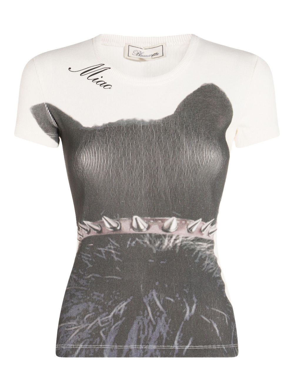 cat-print fine-ribbed T-shirt Highlights - White - Ribbed knit - Cat graphic print - Short sleeves - Crew neck Imported Composition Cotton 95%, Elastane 5% Washing instructions Read Manufacturer Guidelines