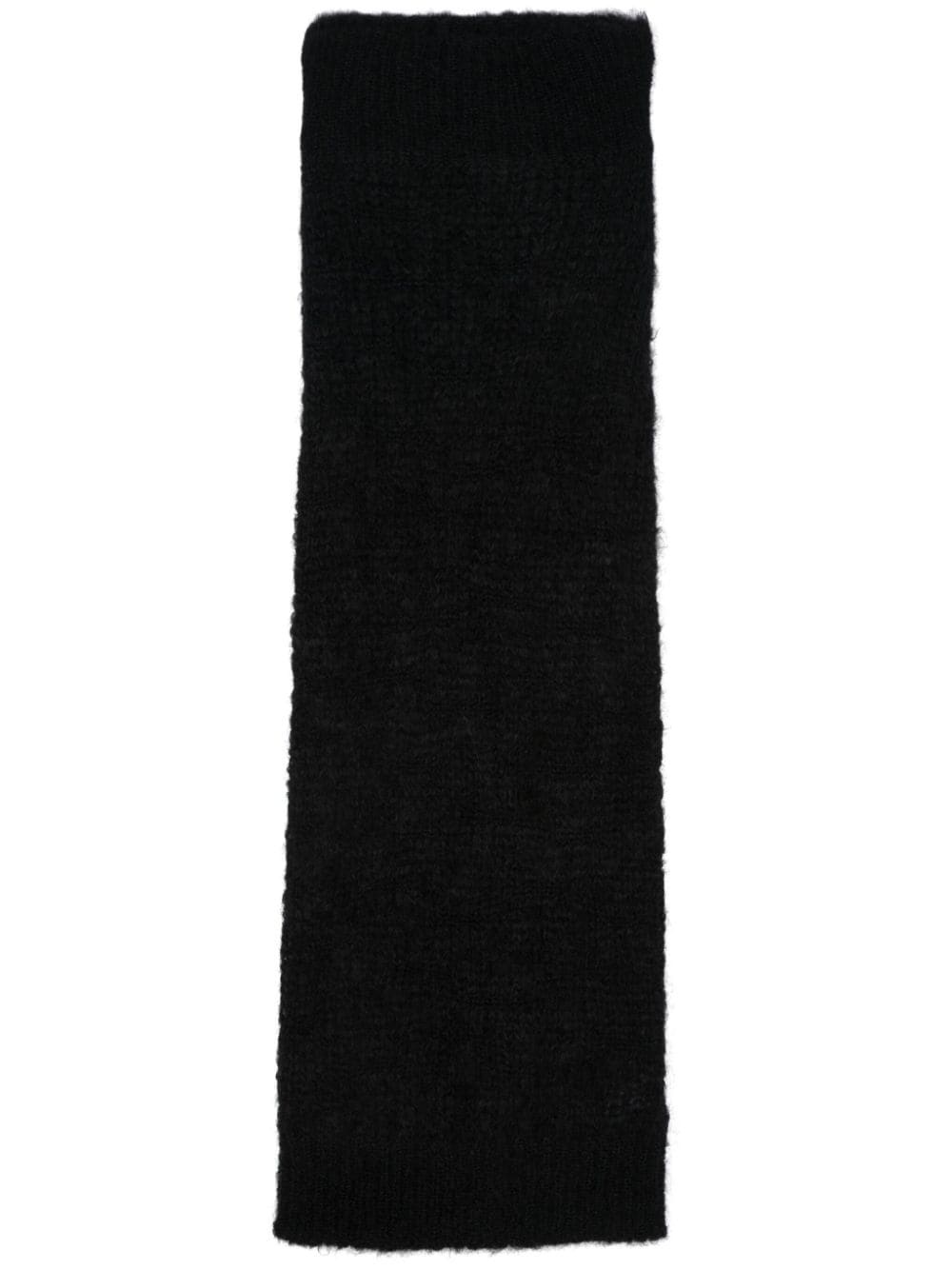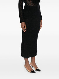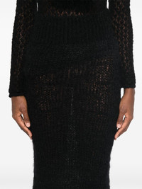 chunky-knit midi skirt Highlights - Black - Mohair blend - Chunky knit - Brushed effect - Elasticated waistband - Straight hem - Mid-length - Slip-on style Made in Italy Composition Mohair 76%, Polyamide 12%, Wool 12% SIZE & FIT Model measurements Height 5 ft 10 in(1.77 m) Bust/Chest 34.64 in(88 cm) Hips 35.43 in(90 cm) Waist 24.8 in(63 cm) FittingInformation This midi-length skirt is intended to be worn high on the waist Made with a midweight knit, this piece offers some stretch This piece fits true to size – take your usual size