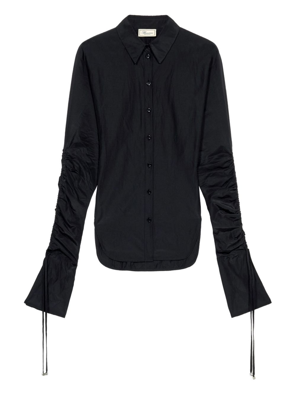 cinched shirt Highlights - Black - Ruched sleeves - Cinched waist - Button fastening - Long sleeves - Drawstring-fastening cuffs Imported Composition Fabric 100% Washing instructions Read Manufacturer Guidelines