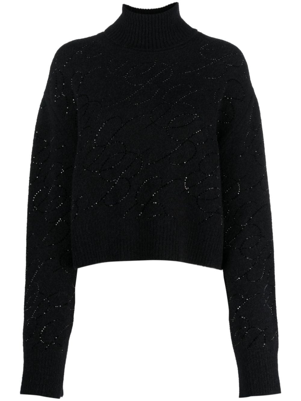 crystal-embellished knitted jumper Highlights - Black - Alpaca wool-wool blend - Knitted construction - Logo motif - Crystal embellishment - Roll neck - Long sleeves - Ribbed cuffs and hem Made in Italy Composition Alpaca Wool 52%, Polyamide 32%, Wool 13%, Elastane 3% SIZE & FIT Model measurements Height 5 ft 11 in(1.8 m) Bust/Chest 30.7 in(78 cm) Hips 35.03 in(89 cm) Waist 24.4 in(62 cm) FittingInformation Designed for a relaxed fit, this piece allows for comfort and movement when worn Cropped in length Made with a midweight knit, this piece offers some stretch This piece fits true to size – take your usual size Washing instructions Hand Wash