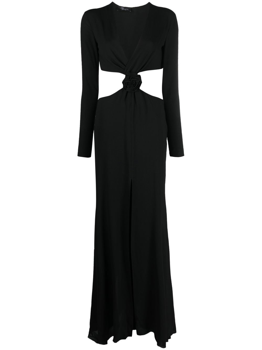 cut-out panel dress black knot detailing cut-out detailing open back V-neck long sleeves flared skirt floor-length Made in Italy Composition Outer: Viscose 98%, Spandex/Elastane 2% Lining: Polyester 100% SIZE & FIT Model measurements Height 5 ft 11 in(1.8 m) Bust/Chest 31.49 in(80 cm) Hips 36.22 in(92 cm) Waist 25.59 in(65 cm) FittingInformation This piece fits true to size. We recommend you get your regular size Designed for a close fit at the bust, waist and hips Made with a mid-weight fabric Washing instructions Dry Clean Only