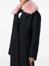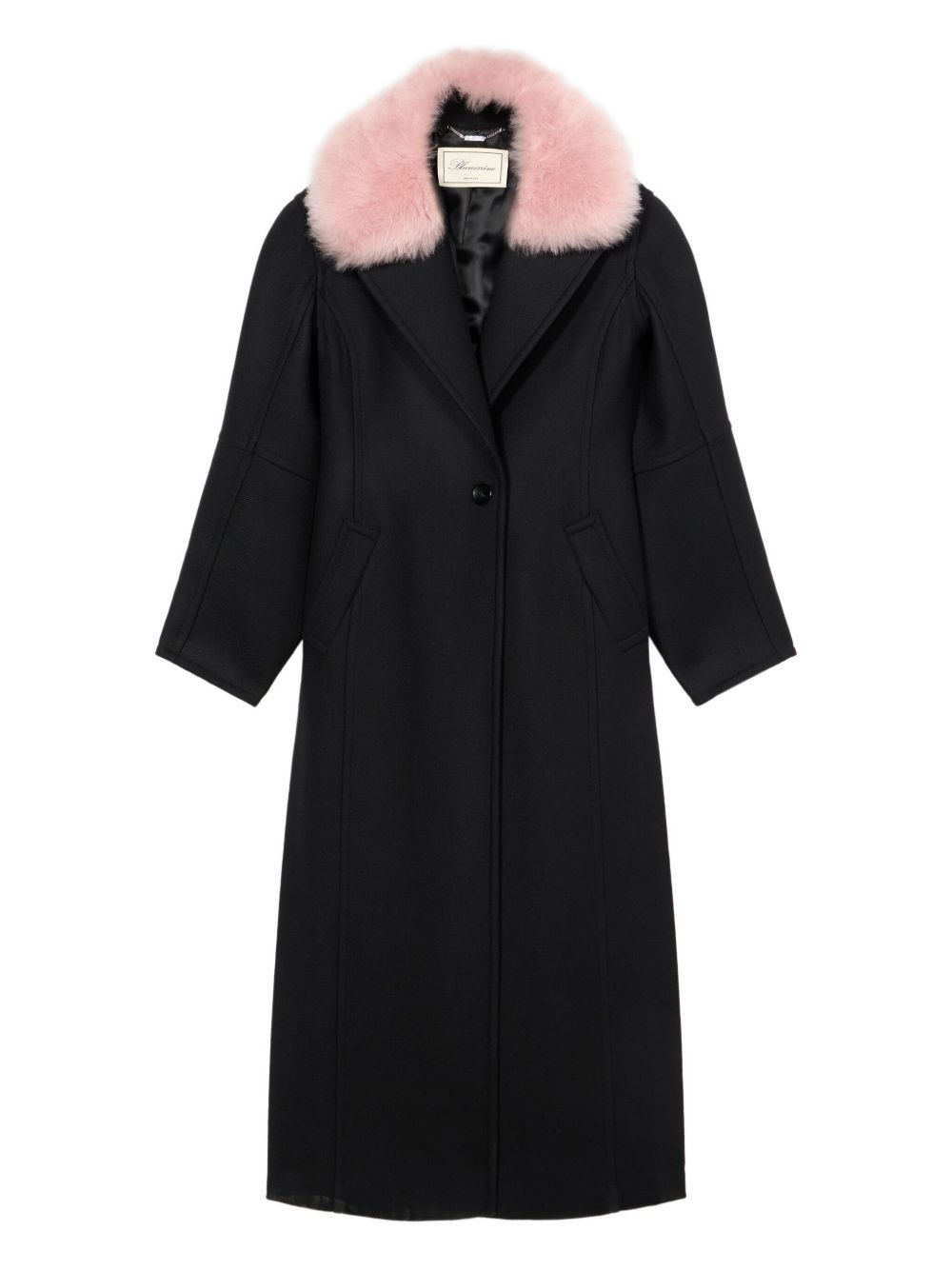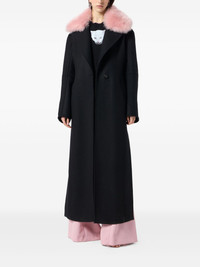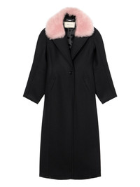 double-breasted faux fur coat Highlights - Black - Faux fur collar in pastel pink - Double-breasted front - Side slits - Tailored long sleeves - Relaxed silhouette Made in Italy Composition Wool 70%, Polyamide 30% Outer: Artificial Fur 100% Washing instructions Read Manufacturer Guidelines