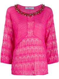 embellished decorative knit blouse Highlights - Hot pink - Bead detailing - Faux pearl detailing - Round neck - Three-quarter length sleeves - Straight hem Made in Italy Composition Viscose 84%, Polyamide 16% SIZE & FIT Model measurements Height 5 ft 9 in(1.74 m) Bust/Chest 32.28 in(82 cm) Hips 35.82 in(91 cm) Waist 24.01 in(61 cm) FittingInformation This piece fits true to size. We recommend you get your regular size Cut for a loose fit Made with a mid-weight fabric