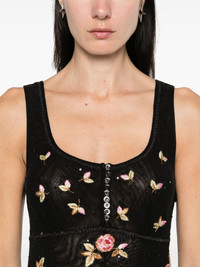embroidery tulle mini dress Highlights - Black - Tulle netting - Semi-sheer construction - All-over floral hand embroidery - Double layer - Concealed side hook and zip fastening - Short front button fastening - Sequin embellishment - Scoop neck - Sleeveless - Asymmetric scallop hem - Thigh-length Imported Composition Cotton 100%, PVC 50%, Viscose 50% Washing instructions Dry Clean Only