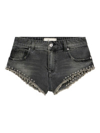 eyelet-detail denim shorts Highlights - Grey - Concealed fly and button fastening - Belt loops - Classic five pockets - Frayed hem Imported Composition Cotton 100% Washing instructions Read Manufacturer Guidelines