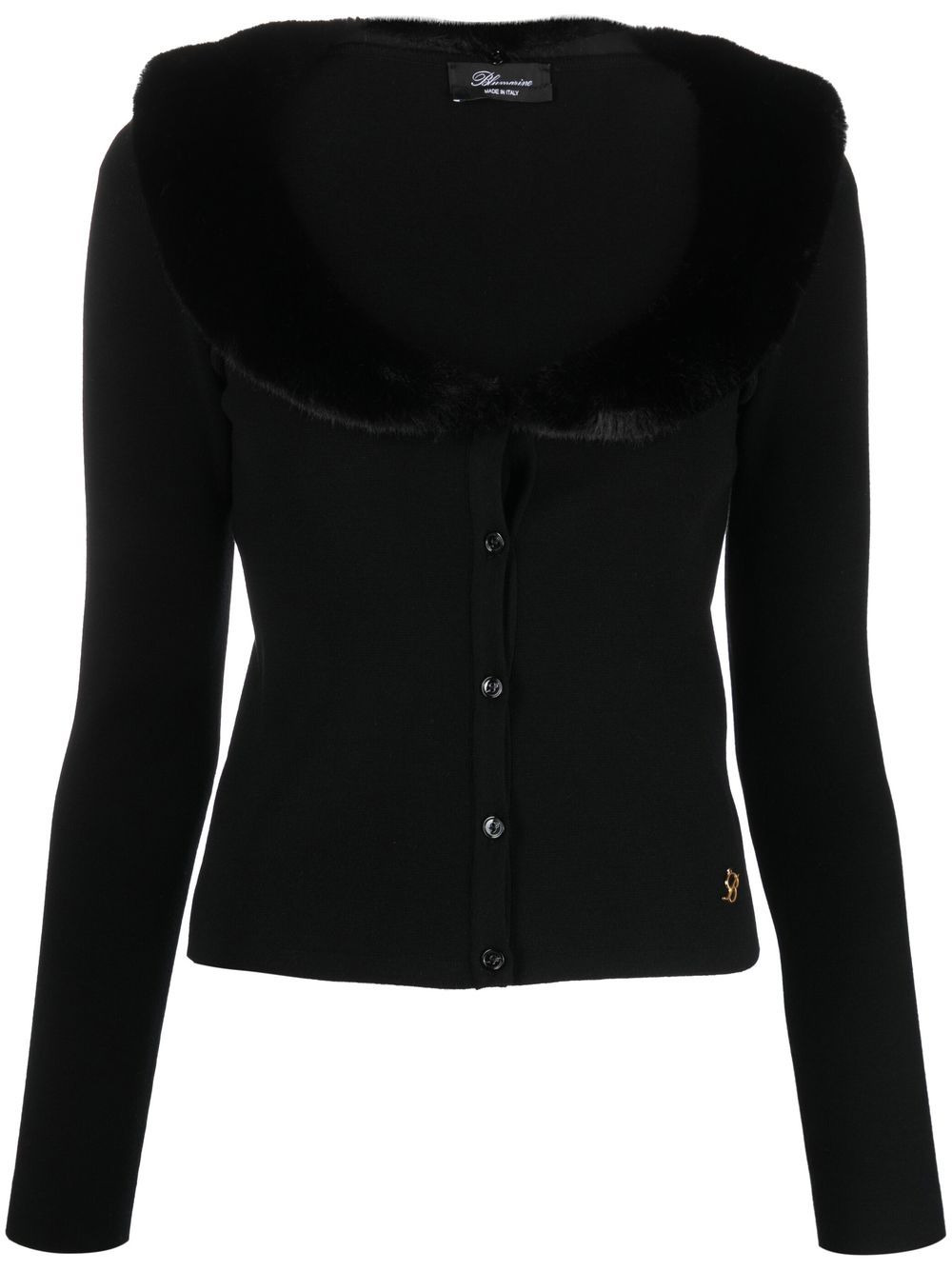 faux-fur collar knitted cardigan This black cardigan shows Blumarine's extravagant and refined style. The classic buttoned-up design is elevated by a detachable faux-fur collar, adding to a sophisticated finish. Made in Italy Composition Viscose 70%, Polyester 30% SIZE & FIT Model measurements Height 5 ft 10 in(1.77 m) Bust/Chest 29.92 in(76 cm) Hips 34.25 in(87 cm) Waist 23.62 in(60 cm) Measurement CHEST 37.4 in(95 cm) SLEEVE LENGTH 25.19 in(64 cm) LENGTH 22.44 in(57 cm) FittingInformation This piece fits true to size. We recommend you get your regular size Cut for a slim fit Made with a mid-weight fabric