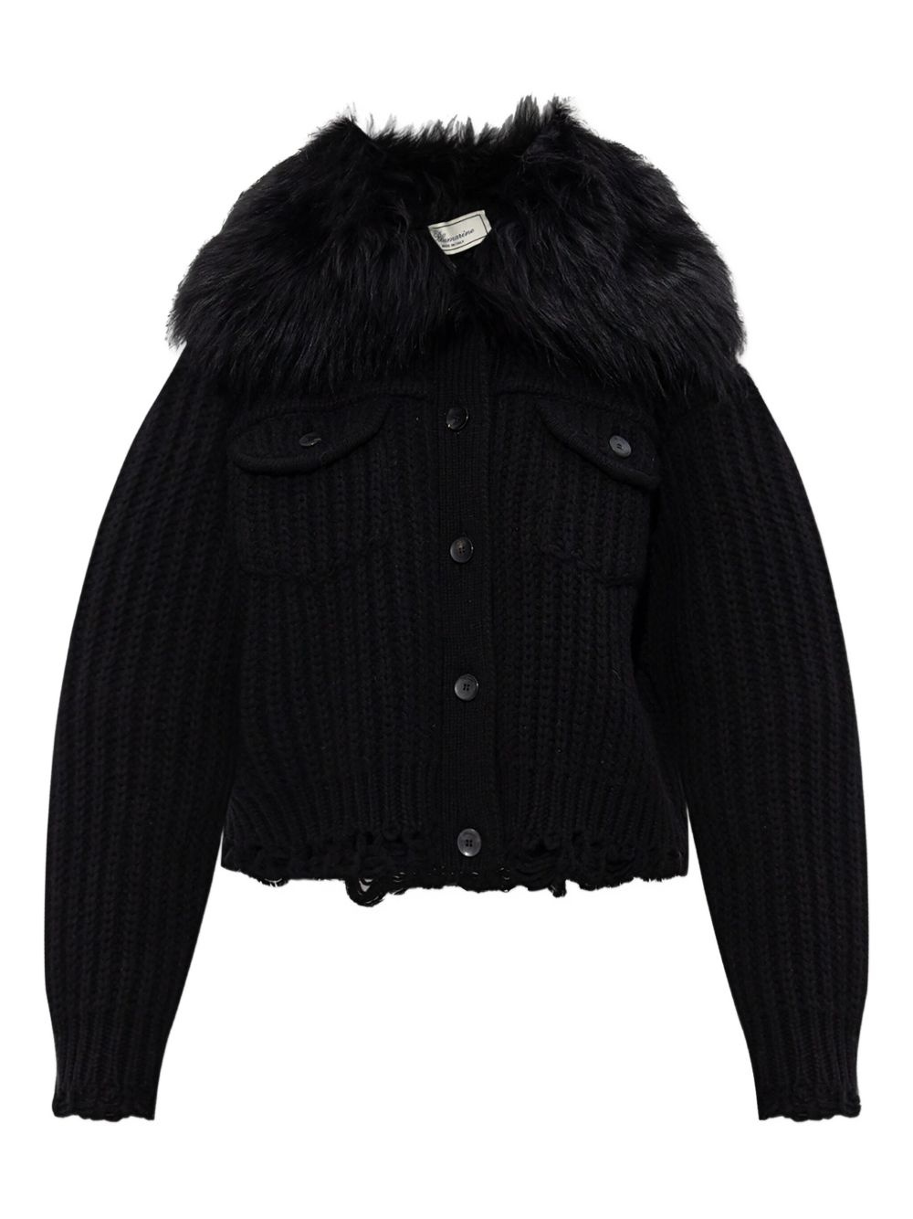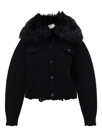 WOOL CARDIGAN WITH FAUX FUR COLLAR