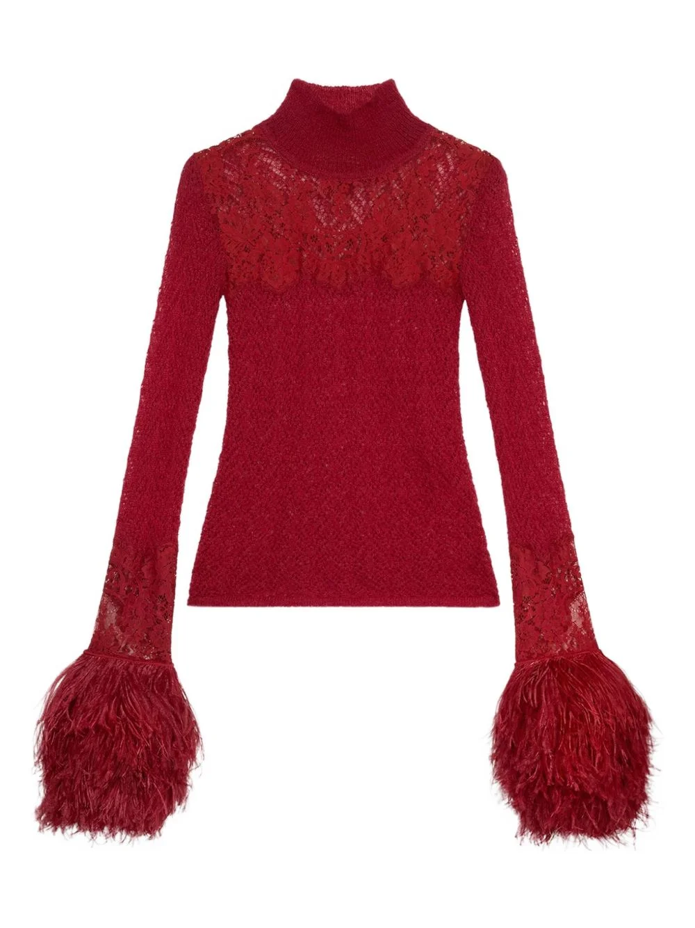LACE AND MARABOU FEATHER OVERLAY SWEATER