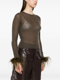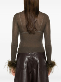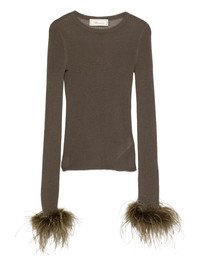 feather-trimmed long-sleeved T-shirt Highlights - Bark green - Feather trim - Ribbed knit - Long sleeves - Round neck - Wool Imported Composition Wool 100%, Ostrich Feather 100% SIZE & FIT Model measurements Height 5 ft 10 in(1.78 m) Bust/Chest 33.85 in(86 cm) Hips 36.61 in(93 cm) Waist 26.77 in(68 cm) Washing instructions Dry Clean Only