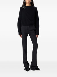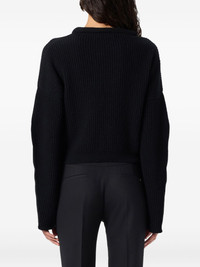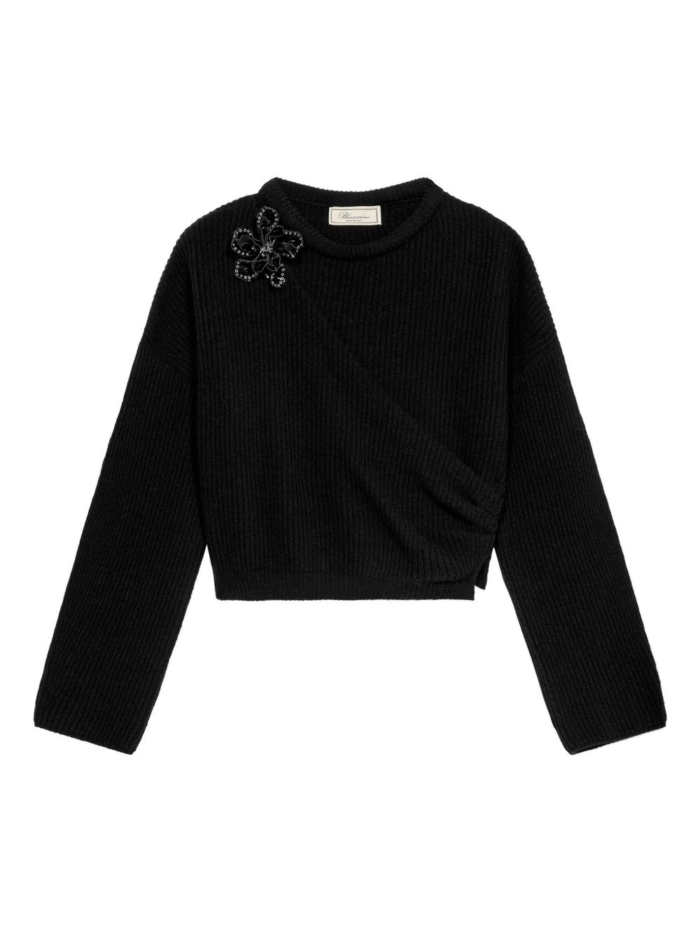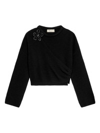 floral-applique ribbed-knit sweater Highlights - Black - Ribbed knit - Flower applique - Side slit - Long sleeves - Round neck Imported Composition Fabric 100%