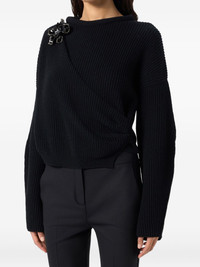 floral-appliqué ribbed-knit sweater
