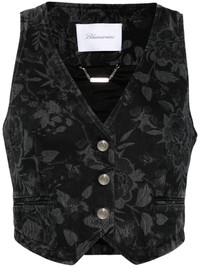 floral-pattern vest Highlights - Black/grey - Cotton - Denim - Patterned floral print - Front button fastening - V-neck - Sleeveless - Two front jetted pockets - Full lining - High-low hem Imported Composition Lining: Viscose 57%, Polyester 43% Outer: Cotton 100% SIZE & FIT Model measurements Height 5 ft 10 in(1.78 m) Bust/Chest 33.85 in(86 cm) Hips 36.61 in(93 cm) Waist 26.77 in(68 cm) FittingInformation Designed for a slim fit that sits just away from the body offering a close yet comfortable fit Sturdy and hard-wearing, this denim piece offers no stretch