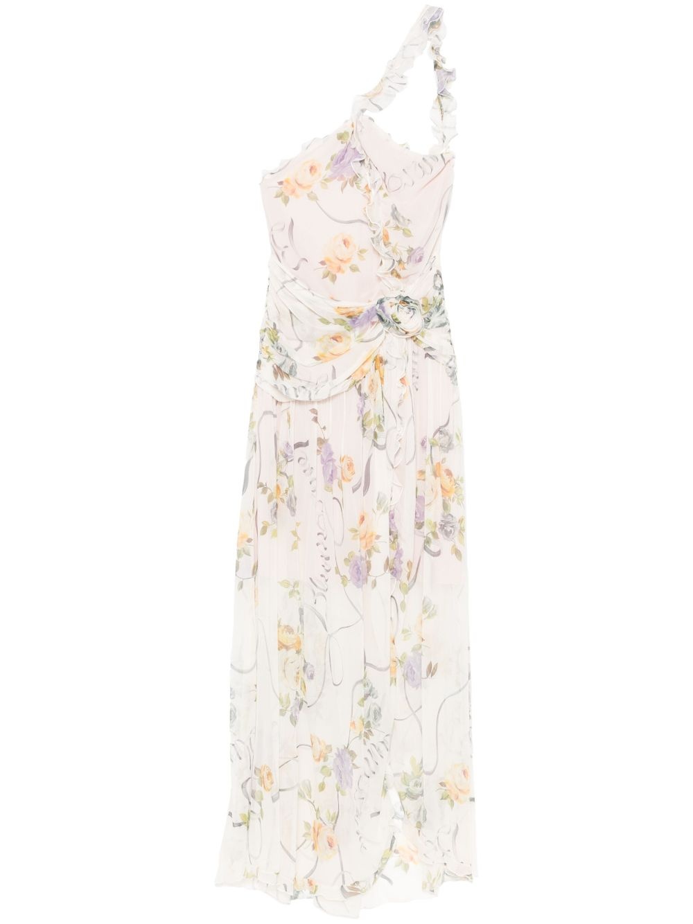 floral-pattern maxi dress Highlights - White - Concealed rear zip fastening - Cut-out detailing - Single shoulder strap - Front slit Imported Composition Outer: Silk 100% Lining: Polyester 100% SIZE & FIT Measurement HIPS 35.82 in(91 cm) LENGTH 61.41 in(156 cm) WAIST 26.37 in(67 cm) Washing instructions Dry Clean Only