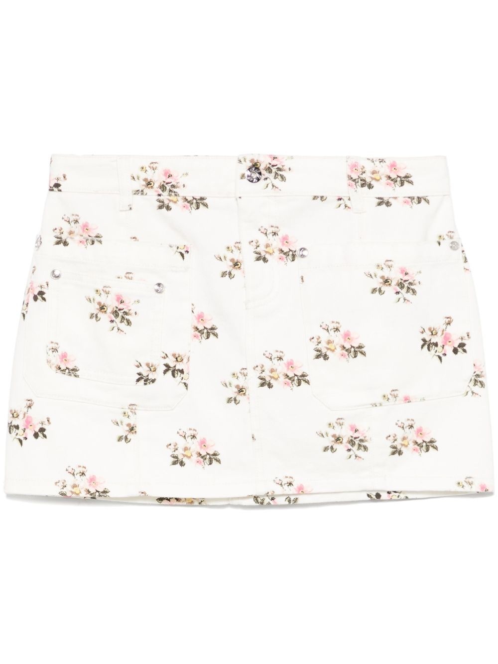 floral-print mini skirt Highlights - White - Concealed fly and button fastening - Belt loops - Three front patch pockets - Two rear patch pockets Imported Composition Cotton 100%