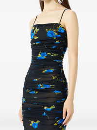 floral-print ruched maxi dress Highlights - Black - Blue floral print - Ruched bodice - Fitted silhouette - Fishtail hem - Spaghetti straps Imported Composition Polyamide 90%, Elastane 10% Washing instructions Read Manufacturer Guidelines