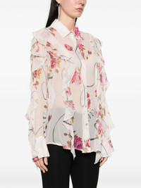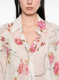 floral shirt Highlights - Light beige - Front button fastening - Ruffled detailing - Classic collar - Long sleeves Imported Composition Silk 100% SIZE & FIT Model measurements Height 5 ft 10 in(1.78 m) Bust/Chest 33.46 in(85 cm) Hips 36.22 in(92 cm) Waist 23.22 in(59 cm) FittingInformation Designed for a slim fit that sits just away from the body offering a close yet comfortable fit Made from a lightweight non-stretch fabric