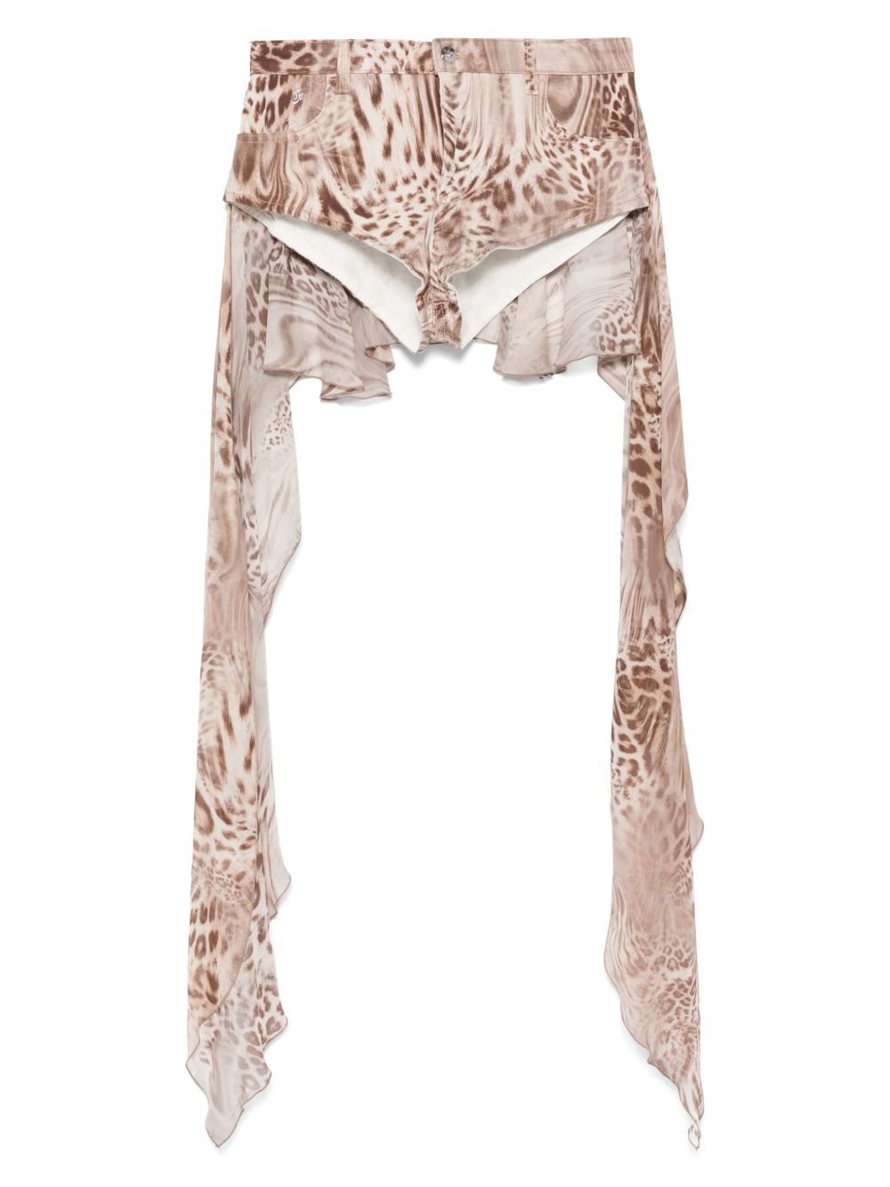 flounce-detail printed shorts Highlights - Animalier brown - Concealed fly and button fastening - Belt loops - Classic five pockets Imported Composition Viscose 100%, Cotton 98%, Spandex/Elastane 2% SIZE & FIT Model measurements Height 5 ft 9 in(1.75 m) Bust/Chest 31.88 in(81 cm) Hips 34.64 in(88 cm) Waist 24.01 in(61 cm) FittingInformation Designed for a close fit throughout Slightly short in length; consider your own measurements Constructed from stretch denim, this piece offers a stretch fit with durability