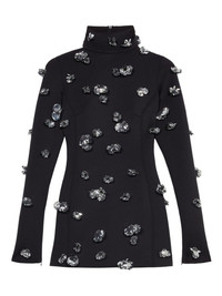 flower-embellished mini dress Highlights - Black - Turtleneck neckline - Long sleeves - Scattered flower embellishments - Three dimensional flower appliques Imported Composition Fabric 100% Washing instructions Read Manufacturer Guidelines