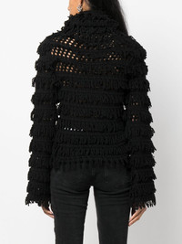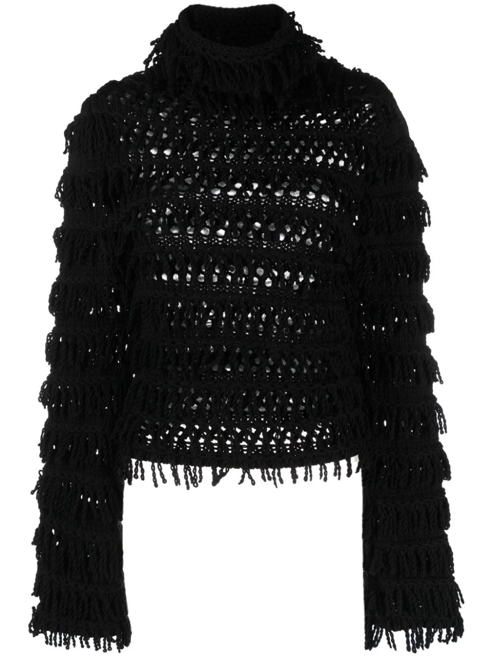 fringe-detail open-knit jumper Highlights - Black - Virgin wool - Fringe detailing - Open knit - High neck - Long sleeves - Straight hem Made in Italy Composition Virgin Wool 100% Washing instructions Dry Clean Only