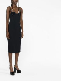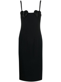 heart-applique pencil midi dress black heart-shaped appliques crystal embellishment square neck spaghetti straps central rear vent straight hem Made in Italy Composition Outer: Viscose 70%, Acetate 26%, Elastane 4% Lining: Polyester 100% SIZE & FIT Model measurements Height 5 ft 10 in(1.79 m) Bust/Chest 31.1 in(79 cm) Hips 35.03 in(89 cm) Waist 24.01 in(61 cm) FittingInformation This piece fits true to size. We recommend you get your regular size Cut for a slim fit Made with a mid-weight fabric Washing instructions Dry Clean Only