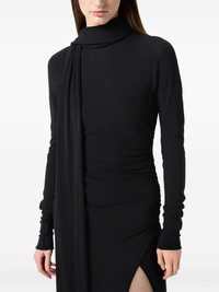 high-neck draped midi dress Highlights - Red - High neck - Draped detail - Long sleeves - Side slit - Gathered waist Imported Composition Fabric 100% Washing instructions Read Manufacturer Guidelines