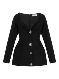 jewel-embellished mini dress Highlights - Black - Sweetheart neckline - Long sleeves - Embellished buttons Imported Composition Fabric 100% Washing instructions Read Manufacturer Guidelines