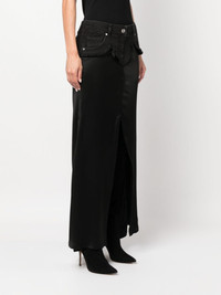 layered detail ankle-length skirt Highlights - Black - Cotton-silk blend - Layered design - Mid-rise - Front slit - Ankle-length - Two rear patch pockets Imported Composition Cotton 100%, Acetate 55%, Silk 45% SIZE & FIT Model measurements Height 5 ft 10 in(1.78 m) Bust/Chest 33.46 in(85 cm) Hips 36.22 in(92 cm) Waist 23.22 in(59 cm) FittingInformation This maxi-length skirt is intended to be worn low on the hips Made from a midweight non-stretch fabric This piece fits true to size – take your usual size Washing instructions Dry Clean Only