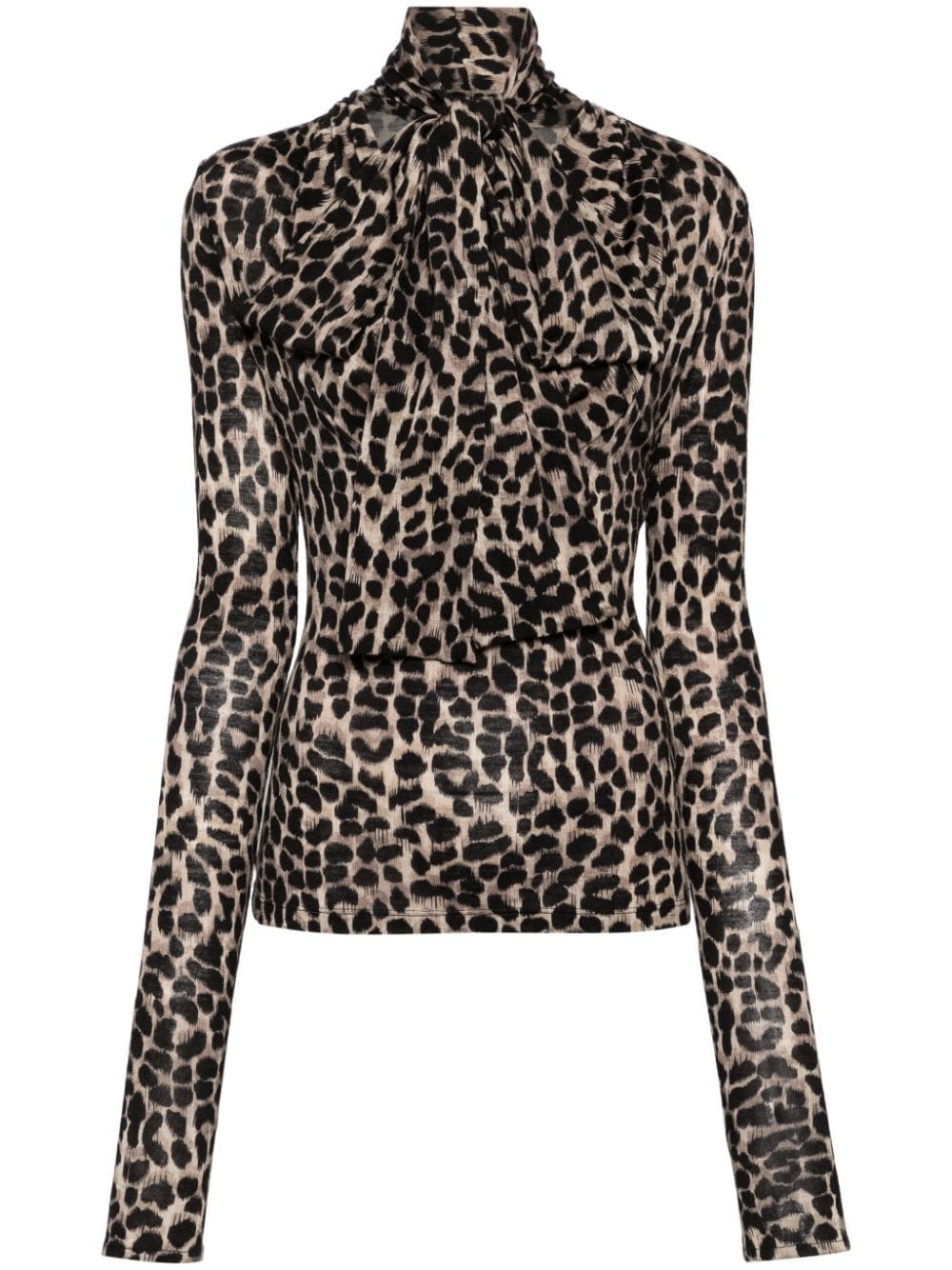 Animalier-print blouse Highlights - Brown - Wool - All-over leopard print - Scarf detailing - Cowl collar - Long sleeves - Straight hem Made in Italy Composition Wool 100% SIZE & FIT Model measurements Height 5 ft 9 in(1.76 m) Bust/Chest 31.1 in(79 cm) Hips 35.03 in(89 cm) Waist 24.4 in(62 cm) FittingInformation Designed for a close fit throughout Made with a lightweight knit, this piece offers some stretch This piece fits true to size – take your usual size