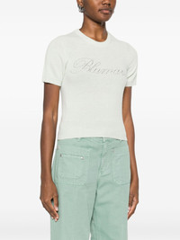 logo-applique T-shirt Highlights - Light green - Ribbed cuffs and hem - Crew neck Made in Italy Composition Cashmere 100% SIZE & FIT Model measurements Height 5 ft 10 in(1.77 m) Bust/Chest 34.64 in(88 cm) Hips 35.43 in(90 cm) Waist 24.8 in(63 cm) FittingInformation Designed for a close fit throughout Made with a lightweight knit, this piece offers some stretch