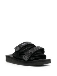 logo-patch touch-strap slides Blumarine pairs quality craftsmanship with contemporary design. Seen on this pair of sandals, the shoes feature a logo patch at the front of the touch-strap fastenings, which effortlessly ties in with contemporary branding trends. Highlights - Black - Logo patch to the front - Crystal embellishment - Front touch-strap fastening - Open toe - Flat sole Made in Italy Composition Sole: Rubber 100% Lining: Rubber 100% Outer: Rubber 50%, Silk 50% SIZE & FIT Measurement HEEL 1.18 in(3 cm) Sole height 0.78 in(2 cm)
