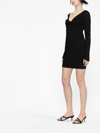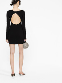 long-sleeve V-neck minidress This minidress exhibits Blumarine’s ability to channel elegant minimalism in its designs. The piece is presented in a timeless black hue while the long-sleeve silhouette is defined by the V-neck and open back detailing. Made in Italy Composition Viscose 98% Lining: Polyester 100% Outer: Elastane 2% SIZE & FIT Model measurements Height 5 ft 10 in(1.77 m) Bust/Chest 31.49 in(80 cm) Hips 35.03 in(89 cm) Waist 23.22 in(59 cm) FittingInformation This piece fits true to size. We recommend you get your regular size Designed for a close fit at the bust, waist and hips Made with a mid-weight fabric Washing instructions Dry Clean Only