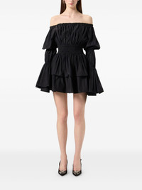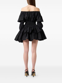 off-shoulder neckline mini dress Highlights - Black - Off-shoulder neckline - Smocked waist - Tiered skirt - Long sleeves - Bell sleeves Imported Composition Fabric 100% Washing instructions Read Manufacturer Guidelines