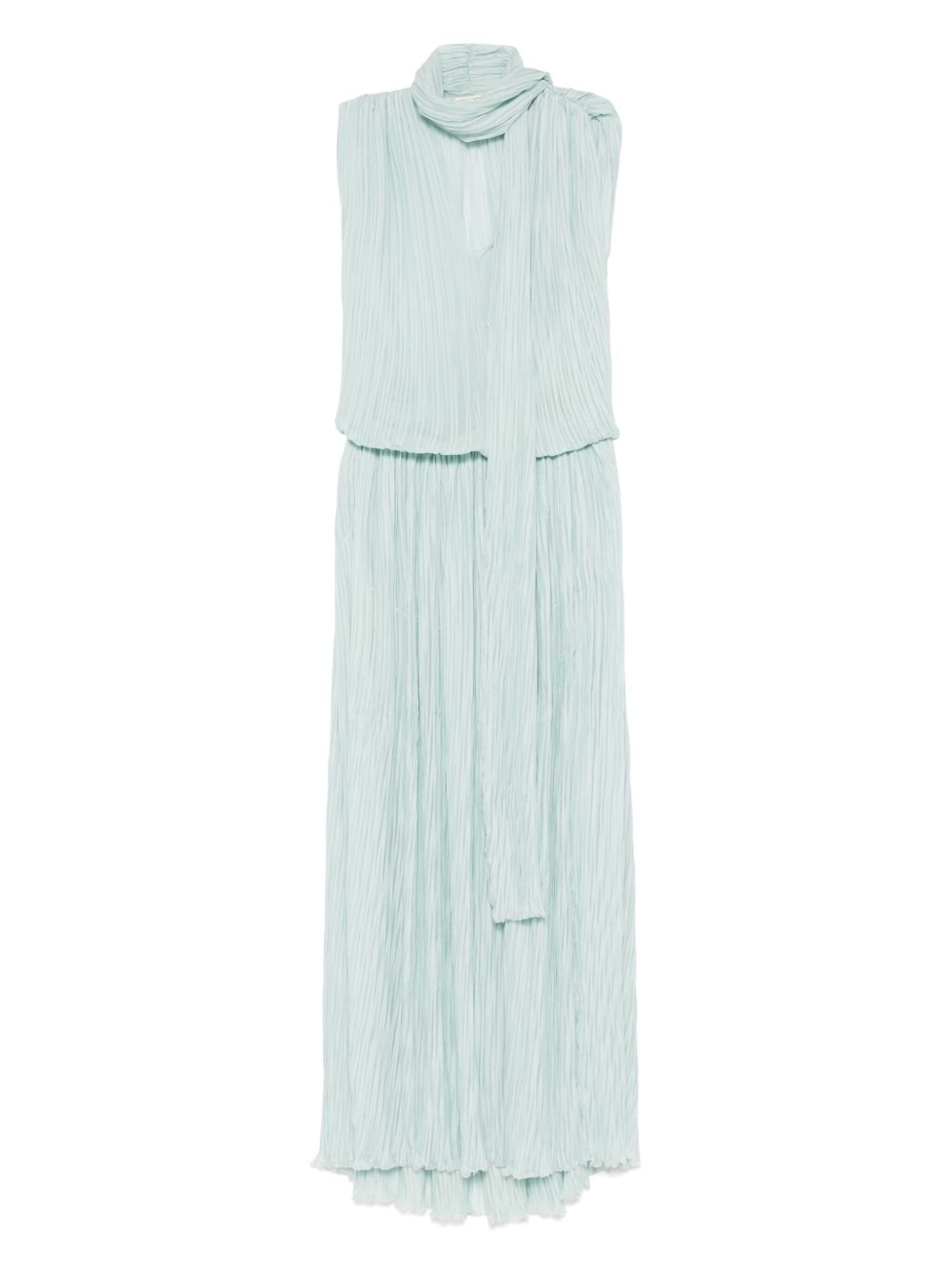 pleated asymmetric midi dress Highlights - Light green - Self-tie fastening - Scarf detailing - Ruffled detailing - Fully pleated Imported Composition Lining: Polyester 100% Outer: Silk 100% SIZE & FIT Model measurements Height 5 ft 9 in(1.75 m) Bust/Chest 32.67 in(83 cm) Hips 36.22 in(92 cm) Waist 24.8 in(63 cm) FittingInformation Designed to be unstructured, offering a loose fit throughout The internal slip sits just away from the body, offering a close yet comfortable fit The pleated construction on this piece allows for additional movement and flexibility in the fit