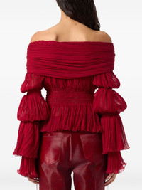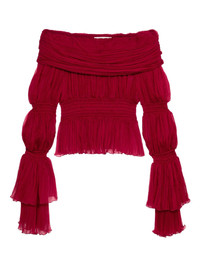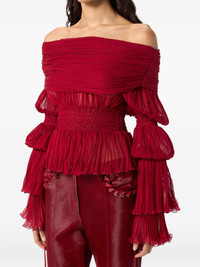 pleated top Highlights - Crimson red - Off-shoulder neckline - Pleated detailing - Smocked waist - Tiered sleeves - Long sleeves Imported Composition Fabric 100%