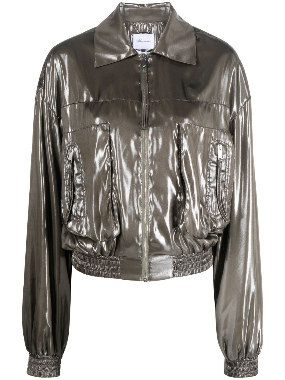 pointed-collar metallic bomber jacket Highlights - Taupe grey - Metallic effect - Patent finish - Tonal stitching - Pointed flat collar - Front zip fastening - Long puff sleeves - Two side zip-fastening pockets - Elasticated hem Made in Italy Composition Lining: Polyester 100% Outer: Polyester 100% SIZE & FIT Model measurements Height 5 ft 10 in(1.78 m) Bust/Chest 30.7 in(78 cm) Hips 36.22 in(92 cm) Waist 25.59 in(65 cm) FittingInformation Designed to be unstructured, offering a loose fit throughout The elasticated hem allows for movement and a comfortable fit Made from a lightweight non-stretch fabric This piece fits true to size – take your usual size