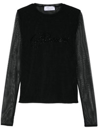 rhinestone-logo T-shirt Highlights - Black - Cotton blend - Mesh design - Rhinestone logo embellishment - Crew neck - Long sheer sleeves - Full lining - Straight hem Made in Italy Composition Cotton 95%, Spandex/Elastane 5% SIZE & FIT Model measurements Height 5 ft 11 in(1.8 m) Bust/Chest 32.67 in(83 cm) Hips 35.82 in(91 cm) Waist 25.98 in(66 cm) FittingInformation Designed for a close fit throughout Made from a lightweight stretch fabric, this piece offers elasticity and flexibility when worn