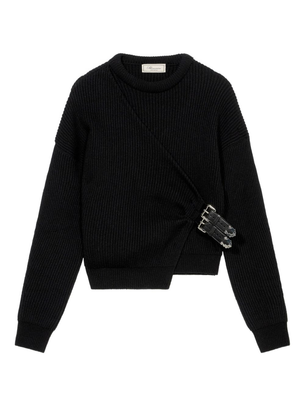 RIBBED WOOL SWEATER WITH STRAPS AND BUCKLES